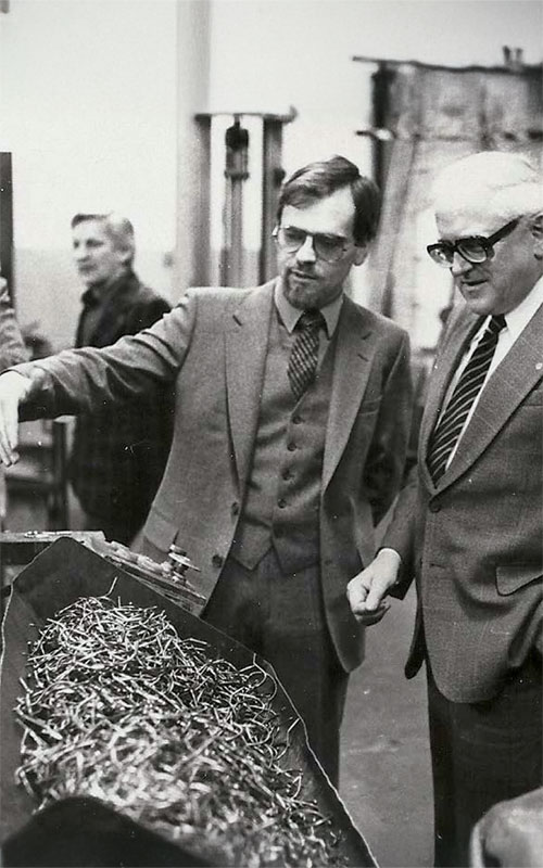 Petterssons war ein Hersteller von Kleiderbügeln für die ganze Welt und empfing viele interessierte Gäste. Im Jahr 1977 gibt Håkan dem schwedischen Industrieminister Nils G. Åsling eine Führung.