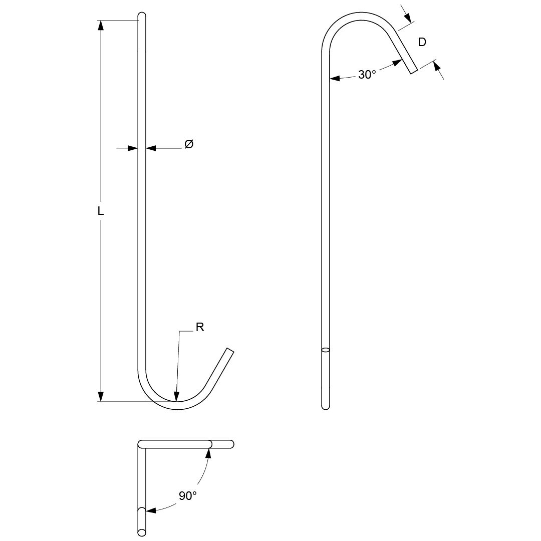 | Art.-Nr. | Menge/VE | L x Ø mm | R, mm | D, mm | |