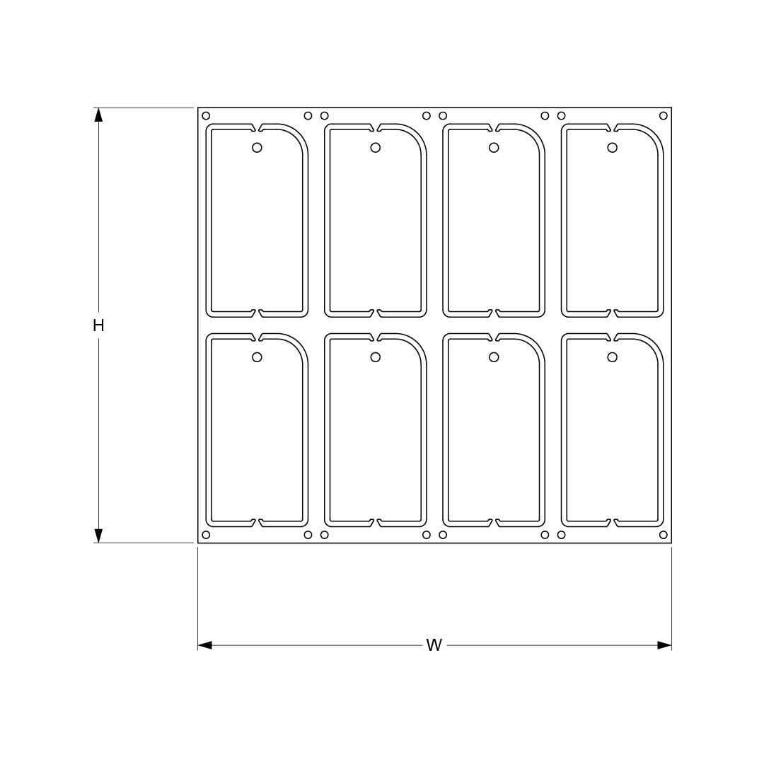 Standardbleche sind verfügbar in Sets zu 2, 4, 6 oder 8 Stück pro Rahmen