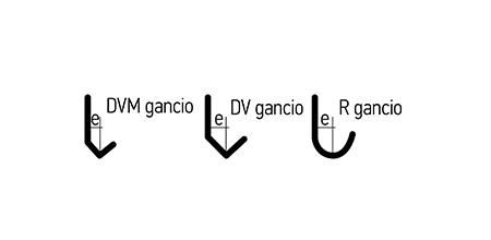 A causa della forma del gancio la capacità di carico dopo il limite di sicurezza e margine di deformazione irreversibile è molto differente. I ganci R hanno un basso margine, i DV molto superiore. La forma DV / DVM è quindi una scelta più sicura.